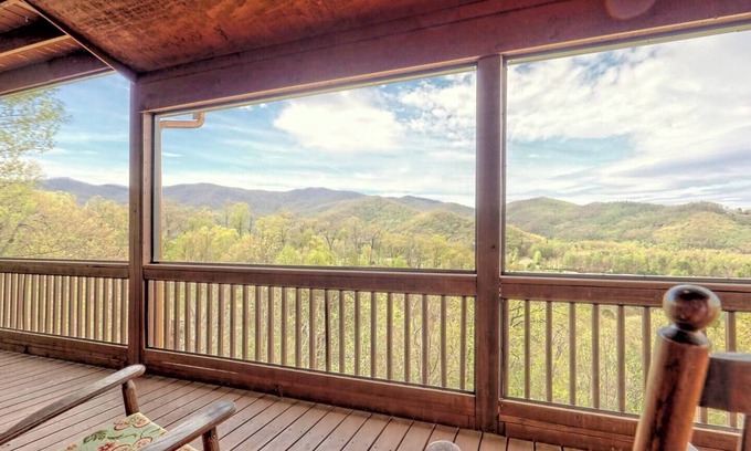 Nestled amongst the trees in the Blue Ridge mountains is Nantahala Treehouse. This spacious 4 br 3 bath cabin is the perfect place to relax and unwind. Snuggle up with a book by the wood burning fireplace or relaxing on the deck enjoy the breathtaking view. Spend the day hiking, boating Lake Chatuge, or check out what our quaint little town of Hayesville has to offer. Downstairs has living area, wet bar, bathroom and br with 2 Q beds. game table. Pet friendly with $100 per pet fee.