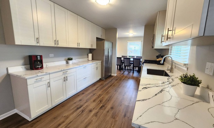 5 min from Naperville Downtown. Close to shoppings, restaurants, parks. Your family will be close to everything when you stay at this centrally-located place. Welcome to newly updated 4 beds 2 bath home (sleeps 10 guests) at fantastic location and neighborhood.
