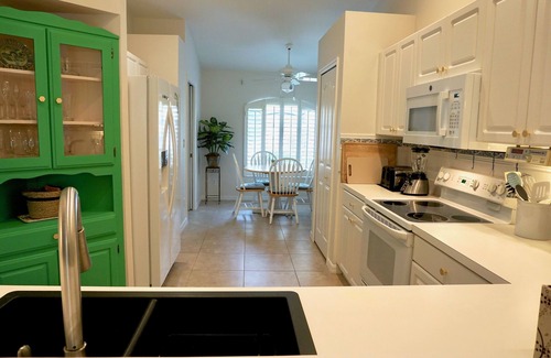 This newly updated Villa can sleep up to 5 guests, has plenty of room, a nice screened in patio with a private heated pool, a beautiful view of the lush backyard, the lake, and your very own lime- and mango tree.
