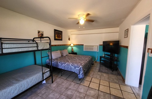 Welcome to the Native American Suite, where comfort and family fun meet in the heart of the Texas Hill Country! This isn't just a room; it's your spacious home base for adventure, boasting a luxurious king-sized bed and a twin-over-twin bunk bed—perfect for dreaming up tomorrow's escapades.