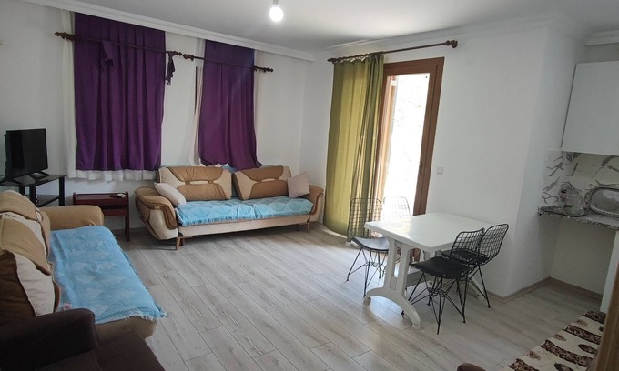 Experience Karaköy like a local in this apartment with a separate room, a separate living room and a separate large bathroom area. The magnificent views of the village and its nature await guests for a pleasant stay. 3 sofa beds are located in the living room and are budget-friendly for large families, a shower and a washing machine and air conditioning contribute to the pleasant experience. Enjoy nature, silence and serenity when you stay in our house