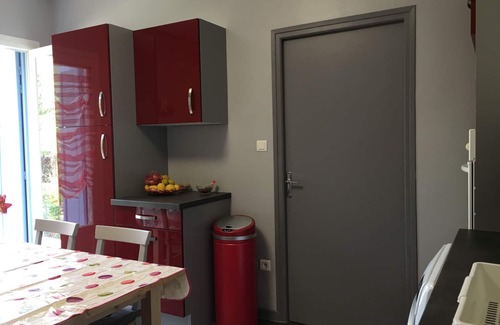- Equipped, fridge / freezer, washing machine, dishwasher, microwave, 1 table + 4 chairs