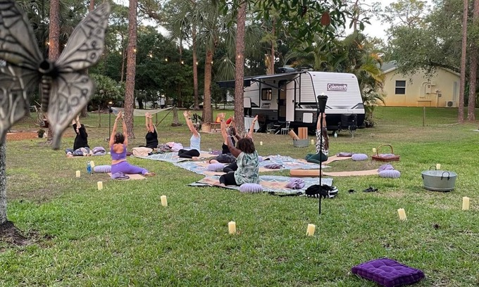 Escape to a serene haven in the heart of Jupiter Farms, where comfort meets nature. Nestled in a peaceful, green sanctuary surrounded by lush trees and gentle breezes, our beautifully equipped 24ft trailer offers the perfect retreat for couples, solo travelers, or small families seeking relaxation, reconnection, and a little adventure.