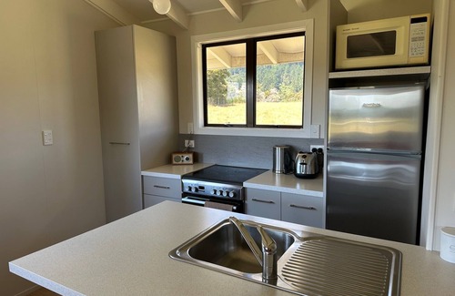 As seen from the pictures this is basic and comfortable cottage - two bedrooms, open plan kitchen / living room, and bathroom with shower. A small deck out the front where you can listen to our creek, and windows facing bush and fields.