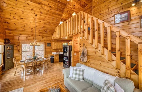Nature's Whisper- View, hot tub, fire pit, private is located in Morganton. Nature's Whisper- View, hot tub, fire pit, private provides accommodation, featuring Kitchen, Security/Safety, Fireplace/Heating, among other amenities. This Cabin features Kitchen, Security/Safety, Fireplace/Heating, to make your stay a comfortable one.