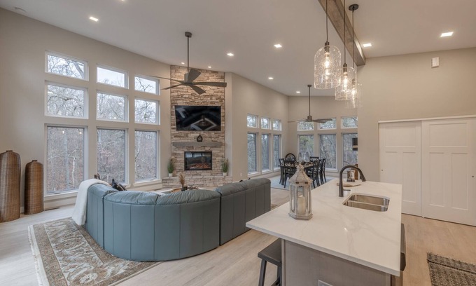 This elevated Innsbrook Vacations property promises to take your next getaway to new heights in our newly constructed treehouse! This refined three-bedroom retreat at Innsbrook Resort offers incredible views and features a stone-wall fireplace, open floor plan, and a wall of floor to ceiling windows that allow you to rest and rejuvenate in the heart of nature!