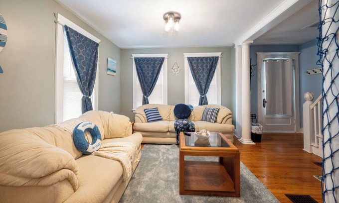 Around the corner from Tweed Airport and minutes to Anthony’s Ocean View & Downtown New Haven! This 3BR, 1.5BA unit in a 2-family home sleeps 8 (3 queen beds & a full size air mattress) and offers a full kitchen, in-unit laundry, and private backyard. Unwind by the fire pit, fire up the grill, and dine outdoors under the stars. Perfect for family getaways, business trips, or a comfy stop before or after your flight. Wherever you’re headed, welcome aboard and enjoy your stay at The Nauti Nook!
