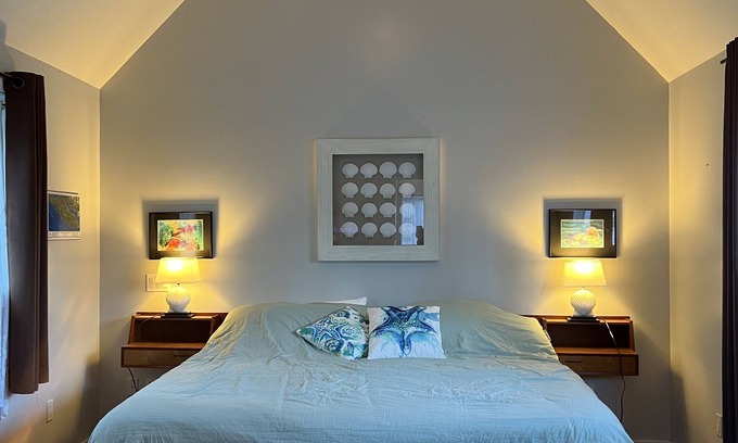 Our guest cottage shares our well maintained 1.88 acre property. We are nearby if you need anything. Our property backs onto the tall trees of the protected Little Qualicum River Estuary. We are a short 3 minute walk to the stunning Qualicum Beach shore with daily visits from eagles, bunnies and deer. BBQ on the patio under the strung patio lights, with table, chairs and propane fire-bowl. It is a relaxing, restful space after a beach day, shopping, sampling local cuisine or adventuring. Our well appointed accommodations come with a very comfortable large king-size bed, an extra pull-out sofa-bed in living room, kitchen with induction cooktop, apartment size fridge and freezer. Your Qualicum Beach adventure awaits. Come stay, relax and enjoy.