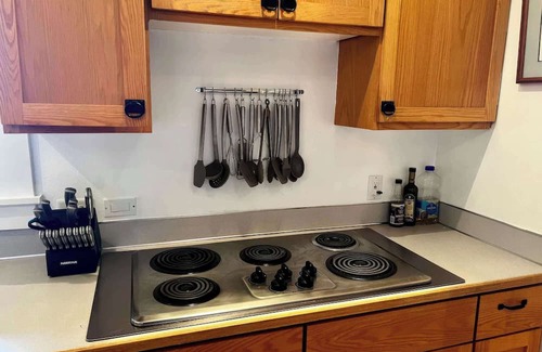 The fully equipped kitchen is ideal for those who love to cook or simply enjoy a morning coffee. Featuring a KitchenAid stainless steel gas stove, double ovens, and all the basics such as pots, pans, dishes, and utensils, it’s ready for any meal preparation. A drip coffee maker, toaster, and hot water kettle are available for your convenience, along with a spacious dining table for enjoying meals together.