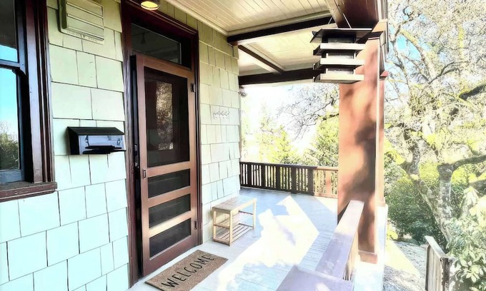 Escape to this charming 1912 craftsman apartment in Willamette Heights, steps from the largest urban park in the U.S. Enjoy stunning mountain views, a private garden patio, and free onsite parking. This 1-bedroom retreat features hardwood floors, a full kitchen, and a spacious living room with sleeper sofas. Stay connected with fast Wi-Fi, and unwind with streaming on the HDTV. Perfect for nature lovers and city explorers alike.