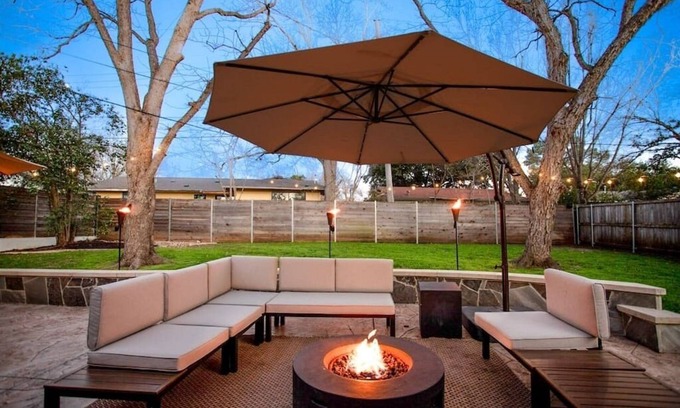 Discover the perfect blend of modern comfort and outdoor living in the heart of Austin's vibrant scene. Our 3-bedroom, 2-bathroom house offers a private oasis with an outdoor area, including a fire pit, Webber grill, table, seating, tiki torches, a large grassy area, and a 60-inch outdoor TV equipped with Netflix. Inside, enjoy modern decor, high-speed internet, Netflix on an 80-inch TV, and the convenience of free parking. 3 Minutes from Congress and all that Downtown Austin has to offer.