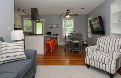 One of the best features of this home is its backyard, where you can enjoy watching the Blue Angels practice every Tuesday and Wednesday. With its prime location and comfortable, stylish interior, this cottage is the perfect home base for your Pensacola adventure. Book your stay today and create unforgettable memories with your loved ones.