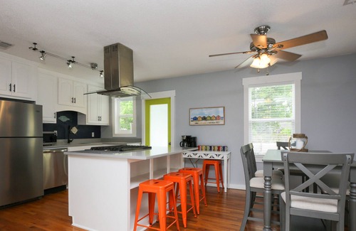 Nestled in the charming neighborhood of Navy Point, this lovely 3-bedroom, 1.5-bath home is the perfect retreat for families and friends looking to experience the best of Pensacola. Boasting a spacious kitchen, a large, fenced-in backyard, and all the amenities and comforts of home, this updated house with fresh, stylish décor and hints of coastal flair provides the perfect setting for your Gulf Coast vacation.
