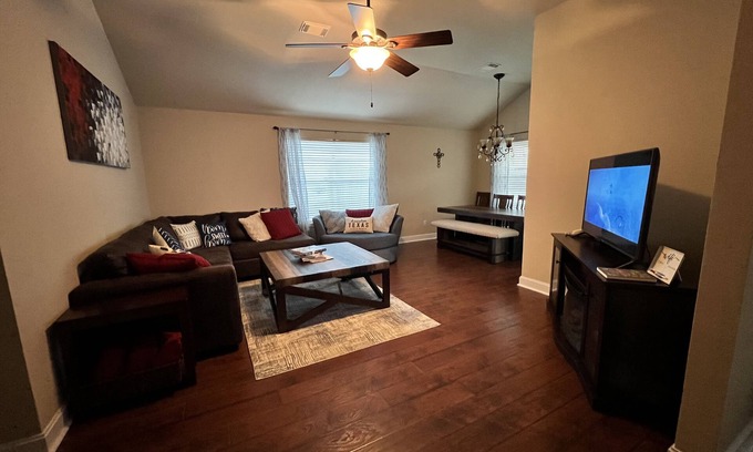 Best-rates for the Atascocita house starts from $188 per night with includes Pet Friendly, TV, Balcony/Terrace, Bedding/Linens, Wellness Facilities, Fireplace/Heating, Kitchen, Security/Safety, Sports/Activities, Entertainment, Barbecue/Outdoor Cooking, Child Friendly, Laundry, Air Conditioner, Parking, Internet, Guest Services StayAndPlay offers fully equipped golf villas, golf hotels, golf resorts, luxury golf cabins, and exclusive golf retreats, making it easier than ever to find your perfect golf escape — ideal for families, peaceful getaways, or pet-friendly retreats with the whole crew.