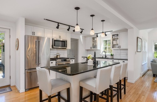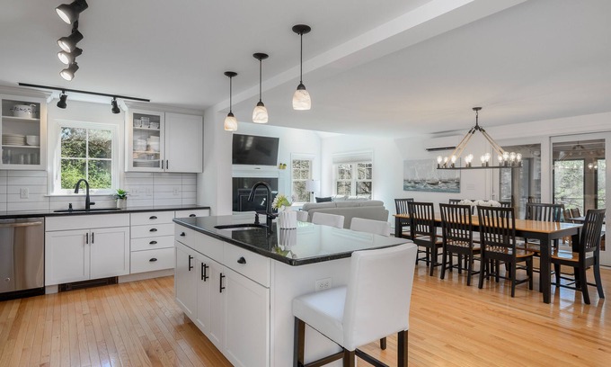Should cooking be your pleasure and pastime, you will find great satisfaction in this gorgeous open concept kitchen with 2 sinks, a center island, fully equipped SS appliances including gas cooking/convection, refrigerator with ice maker, microwave and dishwasher. You'll especially enjoy the special extras like cooking with All Clad Pans, Kitchen Aid Mixer, high end blender, coffee grinder, drip/K-cup and French Press - Not your average Cape Cod Vacation rental.