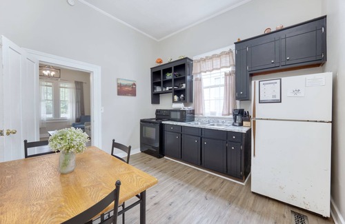 The house itself is a historic duplex with 14 foot ceilings, original hardwood floors, and a fireplace in the living room (sadly only decorative now due to fire codes). Living room includes TV and pull-out sofa. Wifi throughout the house.