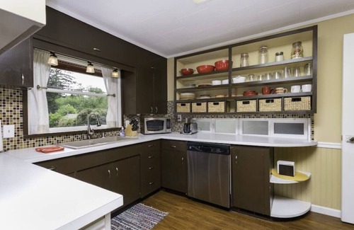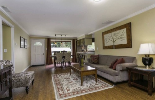 A spacious 3 bedroom, 2 bath for up to 8 guests. Ranch style house with everything on the main level: Primary bedroom with a queen bed, ensuite bath, living room, kitchen, dining room, 2nd bath, 2 additional bedrooms with queen beds, laundry room, and a 1-car garage for private parking and bicycle storage.