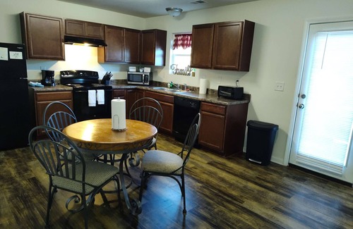 Guests will enter through the front door using a digital keypad. Once inside, you will find an open-concept living room and kitchen. The living room has two sofas (one is a queen sofa bed!) and a large SmartTV. The kitchen has all the essential cookware and dinnerware, and there are two dining tables for meal times.