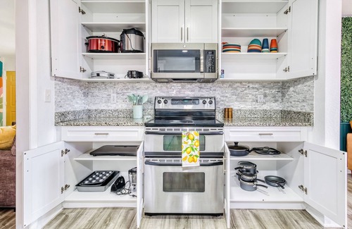 -Kitchen - Fully Equipped - Refrigerator, stove, oven, microwave, dishwasher, cooking utensils, pots, pans, dishes, mugs, glasses, blender, silverware, toaster, Keurig coffee machine, pressure & slow cooker