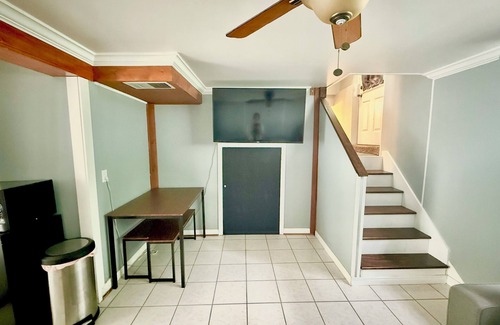 Stay comfortably in South Ogden at this 3-bedroom, 2-bathroom house. One bedroom features one queen bed, and the other two bedrooms have full-size beds, perfect for a group of friends or family. Fully stocked kitchen and dining area with all amenities. Each room has a ceiling fan and smart TVs. With amenities like AC, heating, WiFi, and a washing machine/dryer, guests will feel right at home. There are two separate living rooms with comfortable couches, big-screen smart TVs, and ceiling fans. The lower level living room also has a ping pong table. The property also has a large, fenced backyard shared with a tiny home rented separately. Experience the charm of South Ogden and create lasting memories during your stay.