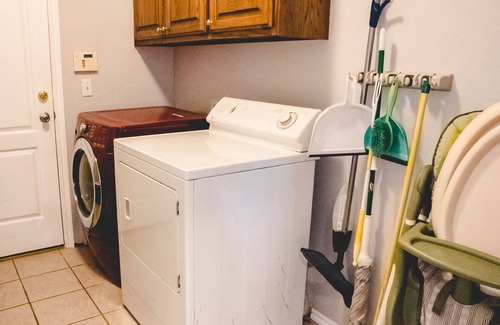 Well furnished home with plenty of room for a family. The bedrooms have blackout curtains, comfortable beds and there is a crib for a toddler or baby. There are additional air mattresses as well. The kitchen is stocked with coffee and a variety of kitchen gadgets and a new full size refrigerator/freezer. The master bath has a jacuzzi. There is also a dedicated office space. There are two cameras outdoors for your safety and ours which includes a camera doorbell on the front porch and a camera facing the back door on the back patio. The camera on the back patio does not record audio.