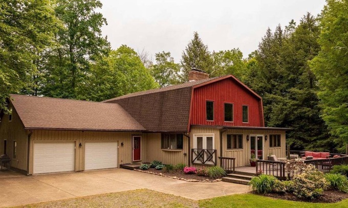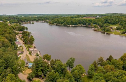 Only 8 minutes from Peak and Peak resort and a short walk to Findley Lake rests this large 3 bedroom 2 bath getaway. 2 bedrooms totaling six separate beds on the first floor and a full bath. Upstairs master bedroom with master bath. Stocked kitchen with granite counters offering all the essentials of home. Relax in the large cozy living room. Outside grilling and chilling on the patio overlooking the swing set, fire pit and private play area. Cornhole,bikes and games to enjoy, too! Hosts 8-12!!