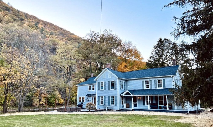 Welcome to our paradise on Pine Creek. A beautiful three acre property and renovated farmhouse at the gateway to the Pine Creek Valley and all it has to offer, with direct access to both Pine creek and the Pine Creek Rail Trail. There is plenty of room for the whole family, and limitless opportunity for outdoor activities, hiking, biking, kayaking, canoeing, swimming and more. Even your own personal pair of outdoor pickleball courts. Or... just pull up a chair on our outdoor patios and watch the creek roll by.