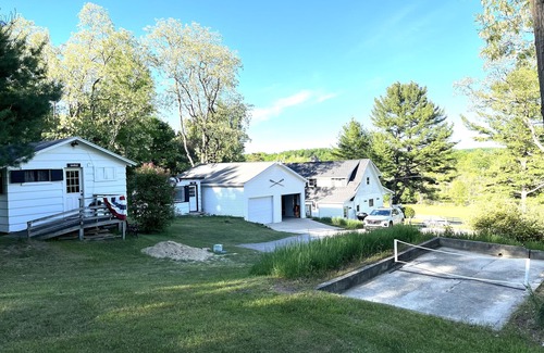 "Great Escape" is the perfect name for this home. There is relaxation and lots of country fun at this wonderful, private location just off Lake Skegemog in the Rapid City/Elk Rapids area. The Great Escape was originally an up north camp in the mid-1960s/70s and now serves as a charming northern retreat. Take your family back to when kids played outside and adults relaxed on the porch sipping iced tea on warm summer days. Featuring a total of 3 bedrooms and 3-1/2 bathrooms in the main house, you can bring the whole family, plus there are two rustic bunk houses outside that are great for kids or adventurous adults. The house is two stories and sleeps 6. (New kitchen summer 2022)