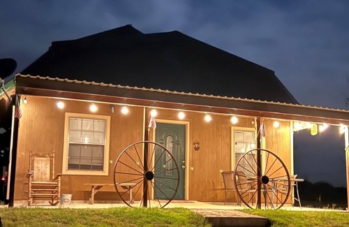 The cabin is not just a dwelling; it's a haven where peace and quiet coexist with the rustle of leaves and chirping birds. A fenced-in yard ensures a safe haven for little ones and furry friends, creating a family-friendly environment. The Brandin' Post Cabin promises a unique blend of comfort and country charm, inviting you to unwind and create lasting memories amid the rustic allure of FJ Ranch.