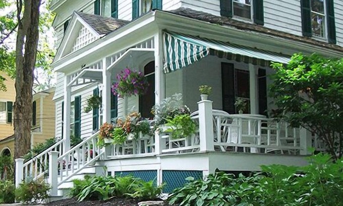 This gracious vintage Victorian home offers three separate guest rooms - available for 6 night rentals. Guests especially enjoy relaxing on the wrap-around covered porch, which has ample tables and chairs. Guests are also welcome to use a common sitting / dining area just off the entrance foyer. All rooms have a private bath within the room.