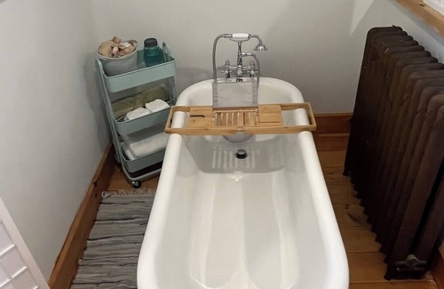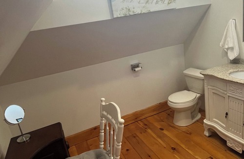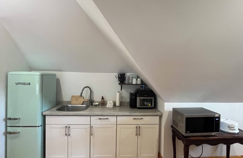 Welcome to th Lakeview Loft where we have carefully crafted a cosy open concept space that blends modern design and my grandmothers’ antiques creating a warm place to curl up or even entertain as all the necessary amenities are available. We ensure you are welcomed with a breakfast basket featuring coffee pods (cream in the retro fridge) bottled water, pastries, sweets and local fruits (when available). The spa sized soaker tub invites a god soak and bath bombs are available for your enjoyment. The huge TV is there and Netflix/wifi is available on site. There is a workspace available if that is the purpose .of your stay (my great grandmother’s desk).