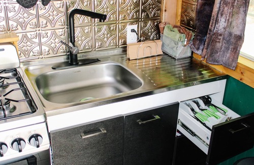 Cabin Has a full size bed and Hide a bed couch. Nice new bathroom with large