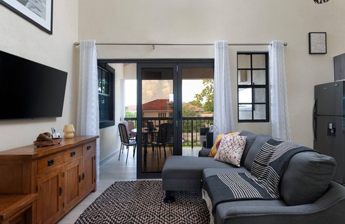 Zinnia Azure is a beautifully furnished condo with immaculate and modern bedrooms and bathrooms and a warm and cozy living area. Sliding doors open to usher in a flood of natural light and fresh breeze and lead on to an inviting balcony with wine cooler and a 4 seater dining table overlooking the pool and a partial view of the ocean. The kitchen is well equipped and along with the living area, is air conditioned. The living area and both bedrooms have AC units.