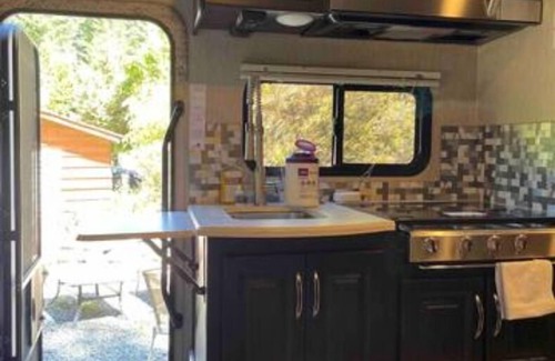 The RV has all essentials you may need for a "back-to-basics" getaway, with a bathroom (with shower), kitchen, and seating area. Hot water has been direct plumbed to the RV but the connection can only be open for the hot shower or dishes as the pressure from the house can cause small leaks… we have extra Towels for this 😃