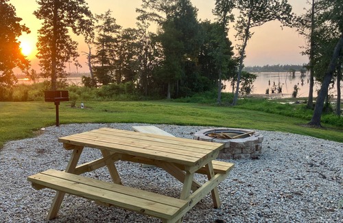 Deer Point lake is known for its big bass and record Shellcrackers so bring your fishing pole, boat or jet ski. There are 2 fishing Kayaks, a charcoal grill, picnic table, and a lake side fire pit for guest use. A private boat dock and trailer parking is available for guest use as well. There is a 50 amp / 240 volt EV plug for our guests traveling in electric vehicles, and a 50 amp RV site on the property if you are traveling in an RV.