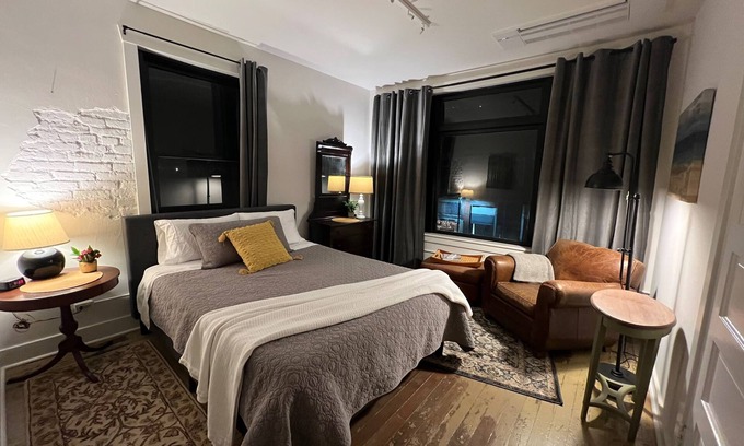 New apartment in historic downtown Colfax building on Main Street on the second floor above a fine art gallery. All new construction given a relaxed feel through its furnishings, accessories, and artwork.