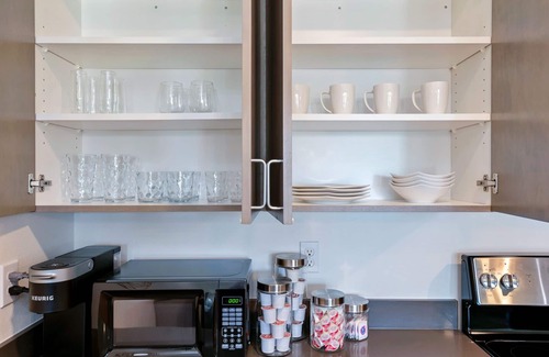 The fully-appointed kitchen includes everything needed for your extended stay: