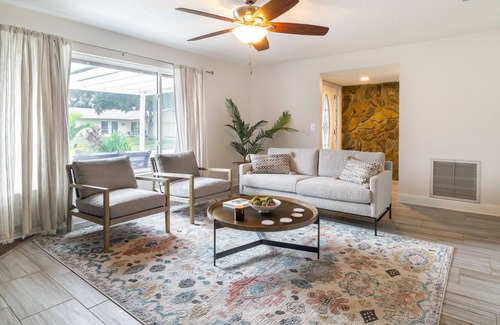 Brand new renovated 3br/2ba home in Largo with close drives to the beach and downtown St Pete. Enjoy this well thought out vacation home and 85” FLATSCREEN TV and Smart TVs in every room. With an open concept kitchen/living room there is plenty of space in this home and even an indoor fireplace and out door fire/pit! Enjoy the inground pool and hottub before going out to some of the best beaches Florida has to offer and many restaurants/Nightlife in the area
