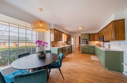 This stunning home is ideally located close enough to many local restaurants, shopping, and attractions, but far enough away from many congested interesections and highways, making it a great location for families, business travelers, and smaller groups.