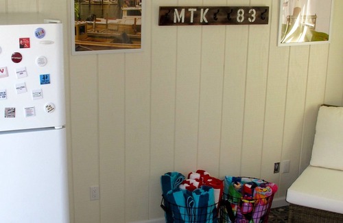 Second floor: Oversized master bedroom with private terrace, en suite bathroom with double vanity, oversized shower and walk-in closet. 2 additional new bedrooms (1 Queen, 1 twin over full bunk bed) and full hall bathroom with tub/shower combo. Open sitting room/den with flat screen TV.