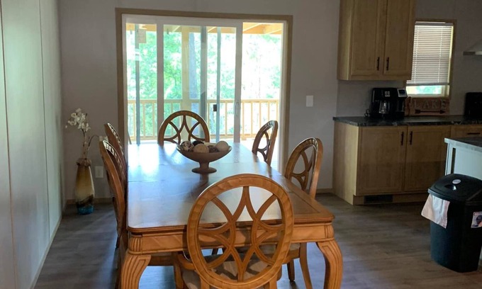 2500 sq ft, 5 br, 3 full baths at Lake Greeson! Great location, borders Corp property on the lake and has a dock, walking distance to Daisy State Park and Bear Creek trails! Sleeps 13 in beds. Perfect for family reunions & large gatherings