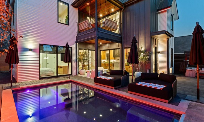 Best-rates for the Zilker house starts from $1,110 per night with includes Pool, TV, Sports/Activities, Kitchen, Air Conditioner, Private Pool, Wellness Facilities, Spa, Hot Tub, Internet, Laundry, Security/Safety, Entertainment, Barbecue/Outdoor Cooking, Parking, Balcony/Terrace, Bedding/Linens, Fireplace/Heating, Child Friendly StayAndPlay offers fully equipped golf villas, golf hotels, golf resorts, luxury golf cabins, and exclusive golf retreats, making it easier than ever to find your perfect golf escape — ideal for families, peaceful getaways, or pet-friendly retreats with the whole crew.