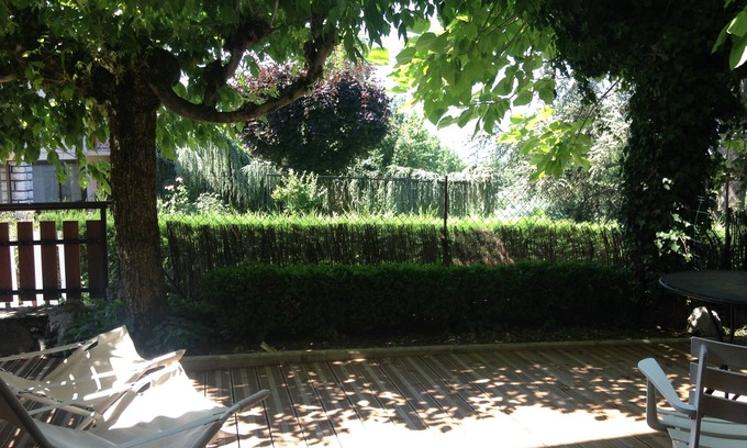 In a big house of 1930, pretty studio entirely renovated then furnished with new with privative wooden terrace, full south.