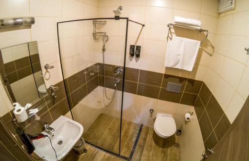 Located 8.4 miles from Atatürk Pavilion, New Akçaabat Hotel offers 3-star accommodations in Akcaabat and has a garden, a shared lounge and a restaurant. The property is around 6 miles from Senol Gunes Stadium, 7 miles from Trabzon Hagia Sophia Museum and 8.5 miles from Çarşı Cami. The property has a 24-hour front desk, airport transportation, a shared kitchen and free WiFi throughout the property. All rooms at the hotel come with air conditioning, a seating area, a flat-screen TV with satellite channels, a safety deposit box and a private bathroom with a shower, free toiletries and a hairdryer. All rooms have an electric tea pot, while some rooms also offer a patio and others also have city views. Guest rooms feature a desk. Guests at New Akçaabat Hotel can enjoy a buffet breakfast. Trabzon Kalesi is 8.6 miles from the accommodation, while The Museum of Trabzon is 9.3 miles from the property. Trabzon Airport is 11 miles away.