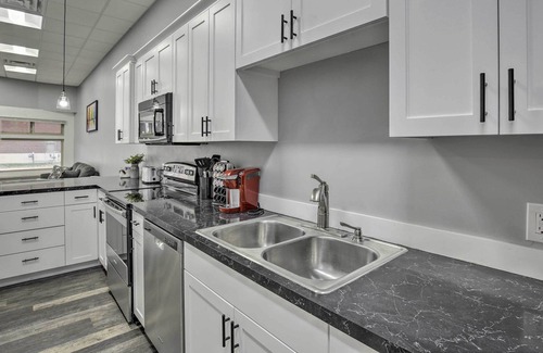 Shimmering water, scenic parks, and memorable adventures await you at this 1-bedroom, 1-bath Albert Lea apartment. This modern vacation rental is an ideal home base after a day of exploring the area. Boat on nearby Fountain Lake, spot majestic pelicans on one of the Breeze Cruises, and visit Myre-Big Island State Park for fresh air and beautiful views! Then, make a meal and watch a movie on the Smart TV, or opt to walk downtown to buzzing bars and restaurants. Visit the ‘Land Between Lakes’ now!