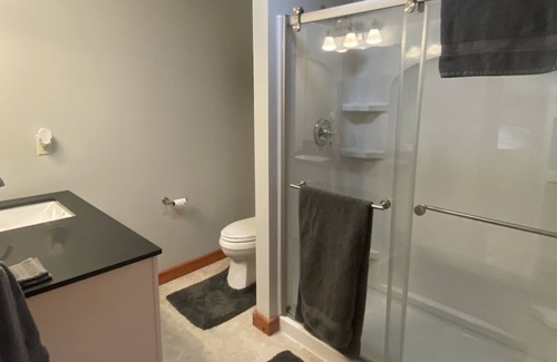 Sit in the comfortable Adirondack furniture and turn on the gas fireplace to give you a feeling of tranquility and settle deep into the setting. The gas instant hot water heater will keep the bath or showers flowing with endless hot water to the heart’s content. The central air and heating system will keep the cabin warm or cool for any desired season.