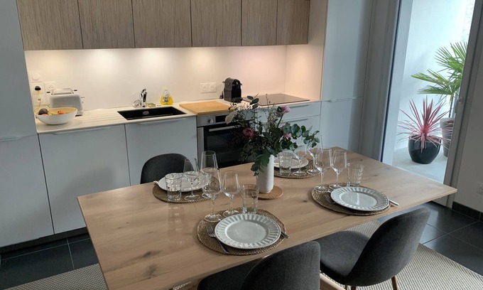 New apartment T3 Saint-Pierre Quiberon is located in Saint-Pierre-Quiberon. New apartment T3 Saint-Pierre Quiberon provides accommodation, featuring Wheelchair Accessible, Accessibility, Security/Safety, among other amenities. This Apartment features Wheelchair Accessible, Accessibility, Security/Safety, to make your stay a comfortable one.