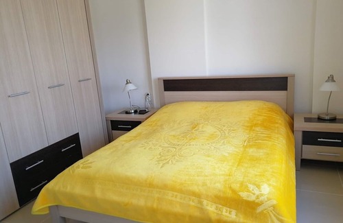 Lovely 8 floor apartment in new resort, with sea view from both balconies facing east and west, there is furniture for 5 people on both balconies. Very large outdoor pool and a less heated indoor in winter. Free fitness pool table tennis and bowling for a fee. there are free sun beds on the beach which is 900m away. The beach is very child friendly without stones. There is free WiFi in the apartment, the market is about 200m away, the city has a long pedestrian street without car traffic with 1200 refunds and shops