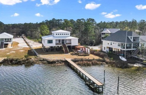 New, bayfront custom home with pier for your boat plus outside deck is located in Gulf Shores. New, bayfront custom home with pier for your boat plus outside deck provides accommodation, featuring TV, Wheelchair Accessible, Balcony/Terrace, among other amenities. This House features TV, Wheelchair Accessible, Balcony/Terrace, to make your stay a comfortable one.