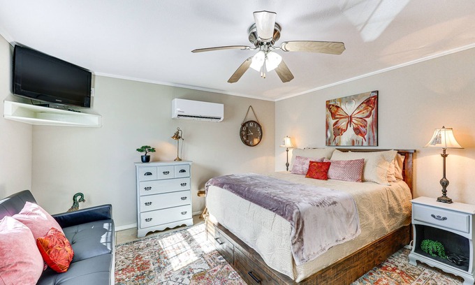 Indulge in the fun-filled lakeside getaway of your dreams when you stay at this charming New Blaine vacation rental. Boasting a well-equipped kitchen, a charcoal grill, and an unbeatable location just a short walk away from Shoal Bay on Lake Dardanelle, this 1-bathroom studio has everything you need for an exciting solo adventure or a serene couples retreat. Enjoy fishing, swimming, and boating along the nearby lake, or venture out to Mount Magazine for a hang-gliding adventure!